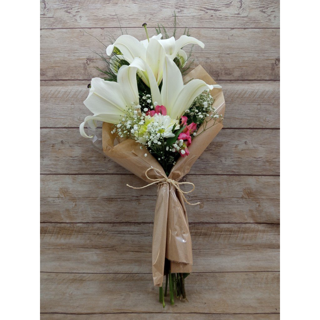 Buquê de Lírios Branco em um lindo Arranjo no papel kraft